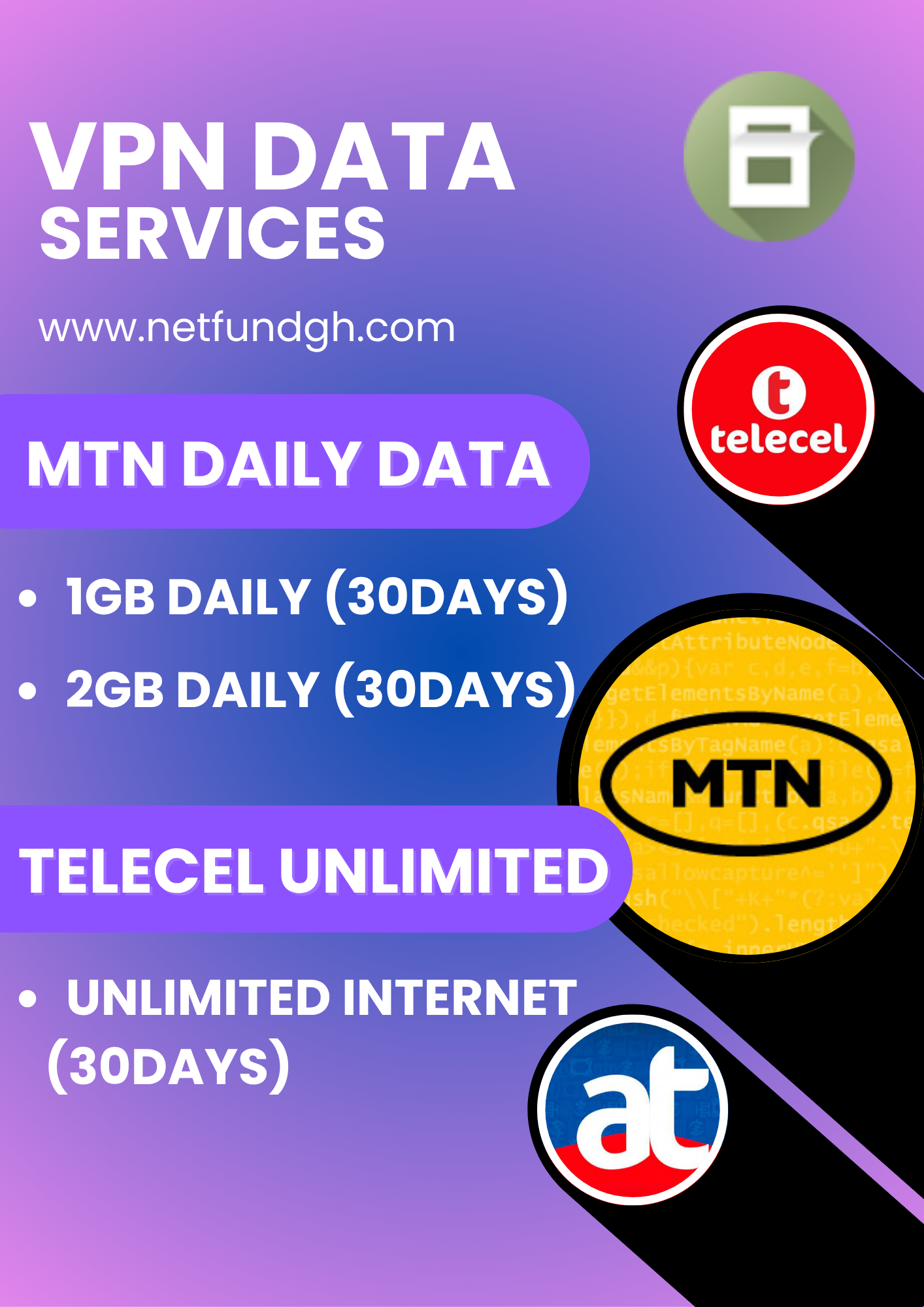 NetFund is a platform for offering affordable data bundles and vpn data services which support Netflix, IPTV Streaming, Online Video Gaming, Video Calls, HD Streaming, YouTube HD, Faster downloads, Faster browsing etc.